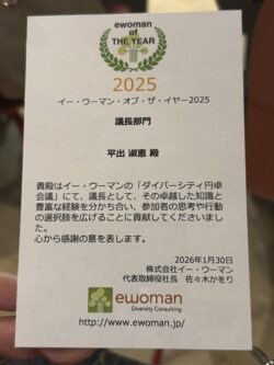 今日は、「イーウーマン・オブ・ザ・イヤー2025」の授賞式でした。